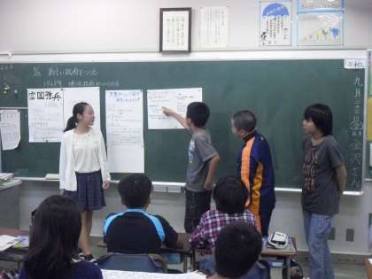 2組は社会科で、明治維新のころの様子についてグループで学び合いをしました。