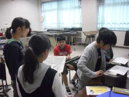 3組は音楽科で、「きつねのおきゃくさま」の話にあったバックミュージックや効果音を選んだり演奏したりしながらの朗読をしていました。