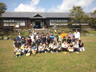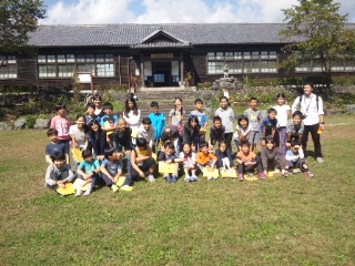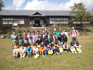 予定より早く、川場村歴史民俗資料館に着きました。早速、写真撮影をしました。世田谷区立小学校二校と一緒になりました。現在、館内を見学しています。
