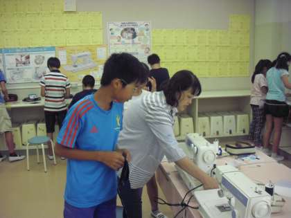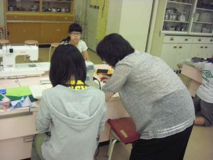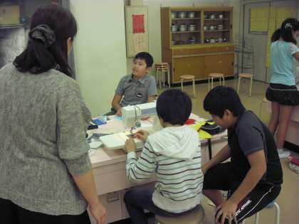 今日から、家庭科の学習に心強い味方が来てくださっています。保護者、地域の方々が手縫い、ミシン縫いのボランティアとして子どもたちを支えてくださることになりました。これは地域と学校で構成する、学校運営委員会の健全育成部会が中心となって進めている事業の一環です。
