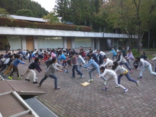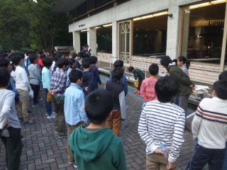 川場移動教室2日目を迎えました。6時に起床し、お祭り広場で朝会を行っています。全員元気です。天候もベストです!