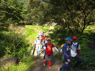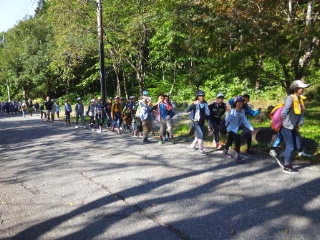 21世紀の森へのハイキングに出発です。爽やかな風が吹いています。元気いっぱいです。