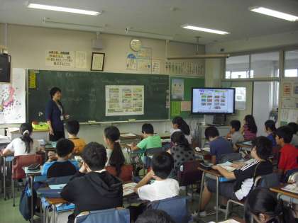 今日は2学期初の英語活動支援員本岡先生による外国語活動でした。