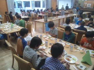 食堂に大きな声が響き渡りました。宿舎での最後の食事です。食欲も旺盛です。楽しい会話も弾んでいます。