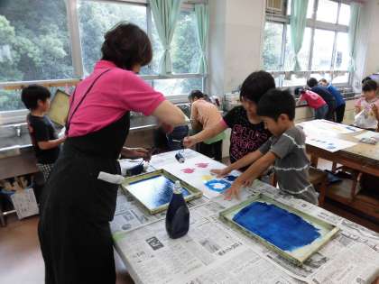 2年生は、昨日今日と図工室をお借りして、「うつして見つけて」の学習を行いました。自分たちで作っておいた好きな動物の型を使って、たくさんの動物の形をうつしていきました。