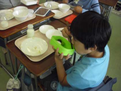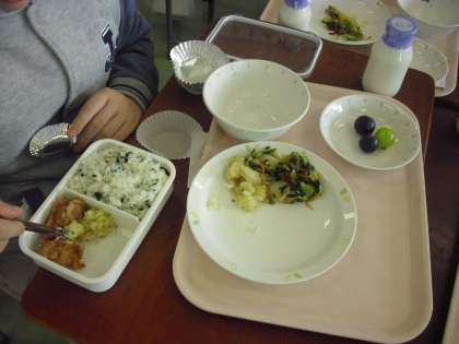 給食はそれらのことがよく考えられて作られていることを学び、盛り付け方などを考えて、各自が用意した弁当箱に詰めました。お弁当のおかずを作って盛り付けることの難しさを実感し、家族のありがたみに気付くこともできました。