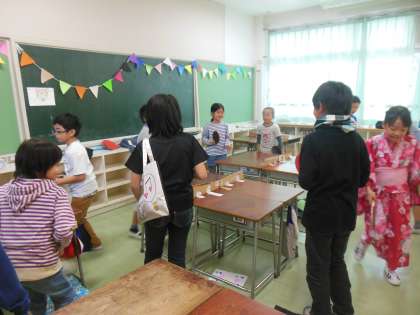3年生のキッズフェスティバルでは、1学期に見学した烏山区民センターの学習を生かしてお店づくりを行いました。