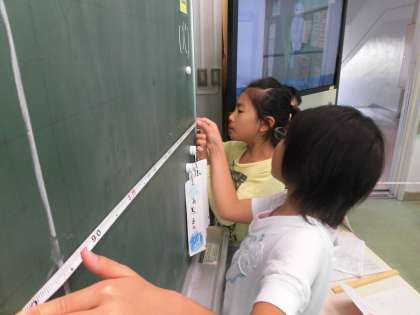今日の算数科の学習では、学校にあるいろいろな物の長さを測りました。