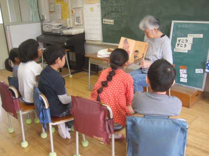 今日は牧先生のお話会がありました。今日のお話は、「ねずみのいえさがし」「ねずみのともだちさがし」「よかったね ねずみさん」「ひとまねこざるときいろいぼうし」「もったいないばあさん」でした。また、さらに4年生と5年生は「こんとあき」の話を読んでいただきました。