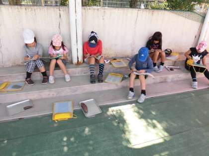また、掘ったお芋を使って、国語の「見て、聞いて、さわって」の学習で、葉やつる、実の様子をよく観察して文章を書いていきます。今日も、自分達の目や手、鼻を使って感じたことをたくさんメモすることができていました。
