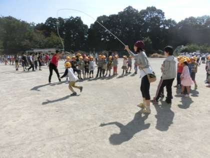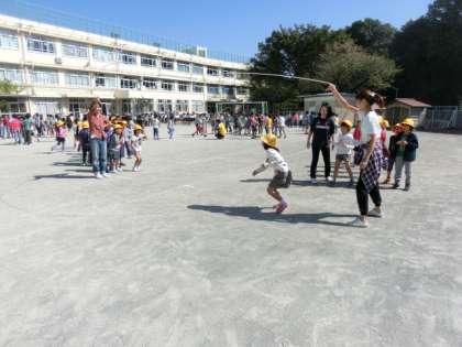 タイミングを考えながら縄を回してくださるので、低学年の子どもたちは上手に縄に入って跳んでいます。