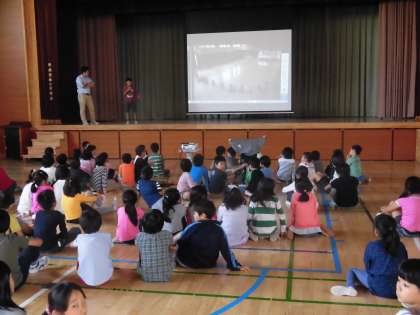 今日の算数科の学習は3年生全体で体育館で行いました。