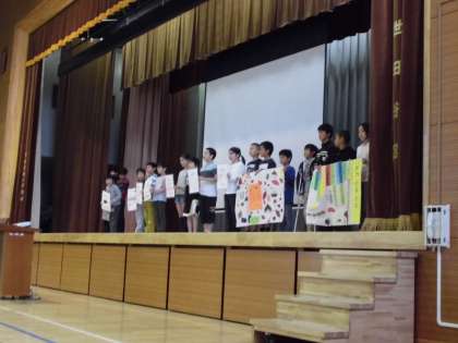 今日の集会は「委員会発表集会」でした。飼育・栽培委員会、エコ委員会、広報委員会の児童が日頃の活動の内容を発表しました。活動の中でがんばっていることや、みんなに気を付けてほしいことなどについてどの委員会も堂々と発表していました。