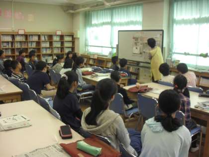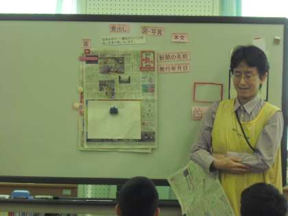 9月から学校図書館の運営を行っている民間委託企業の神谷さんに、新聞の読み方講座をしていただきました。