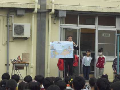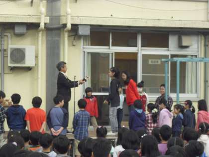 今朝は全校朝会を行いました。オーストラリアへの海外派遣団の引率を終え、帰国された校長先生から貴重な体験のお話をいただきました。また、転入生の紹介やバスケットボールチームの表彰などがありました。