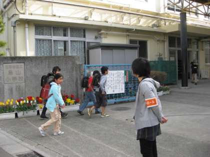 新学期ということもあり、4月7日から13日まで、保護者の方々や先生がいろいろなところに立って登校指導をしています。