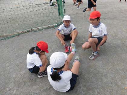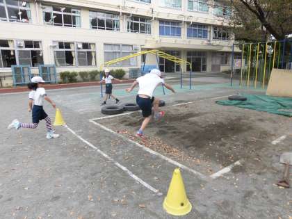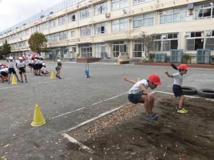 校庭での体育科の学習では「走り幅跳び」が始まりました。