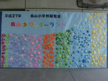 今年度の展覧会では全体テーマを「烏山☆ワンダーランド」とし、子どもたち一人ひとりの平面作品・立体作品・家庭科作品及び共同制作作品を展示し、たくさんの保護者・地域の皆様にも鑑賞していただき、盛況の中終えることができました。