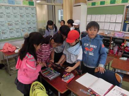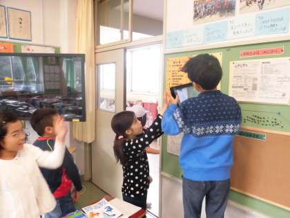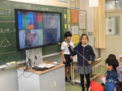 最後は、電子黒板で見つけた正三角形をグループごとに発表し、交流しました。