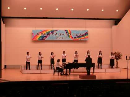 11月28日(日)の午後、世田谷区民会館ホールで開かれた「世田谷PTAコーラスフェスタ2015」(21小学校が参加、世田谷PTAコーラスフェスタ2015実行委員会主催 世田谷区立小学校PTA連合協議会・世田谷区教育委員会共催、世田谷区立小学校長会後援)に、本校のPTAコーラス同好会“さくら*ころん”が初出場しました。