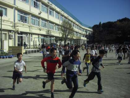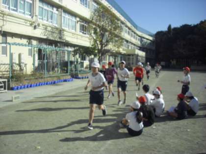 中休みには持久走を行い、体力の向上に努めています。6年生は体育で学習したことを生かして、自分のペースで走っていました。
