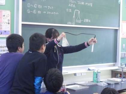 2組では理科「水溶液の性質」の学習で、実験を行いました。塩酸で金属が溶けることを確かめる実験のほか、炭酸水に二酸化炭素が含まれていることを石灰水で確かめる実験も行っていました。