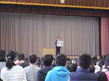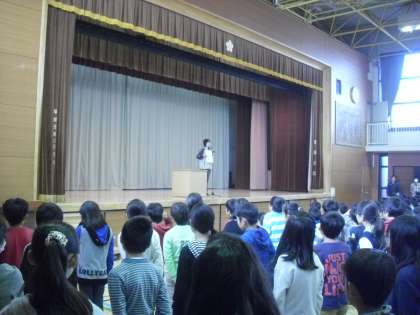 また、先週行われた持久走大会についても、一人ひとりの頑張りの振り返りとともに自分の体力を高めることの大切さを交えたお話がありました。