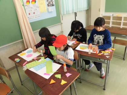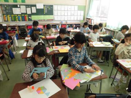 算数科の学習では、三角形を使って模様づくりを行いました。