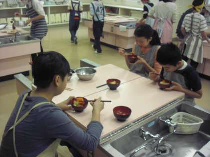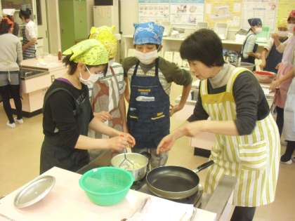 じゃがいもを使った料理ということで、じゃがいもピザからじゃがいもの煮物まで、グループで決めたメニューは実に多様でした。メニューの自由度が高いということは調理の仕方も多様なため、難易度も高くなります。いくつかのグループからは「うわっ。」、「あれ?」という声が聞かれました。それでも楽しそうに作り、おいしそうに食べることができていました。調理の楽しさを実感することができたようです。