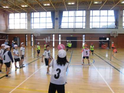 体育の学習では、新しくキャッチバレーボールが始まりました。