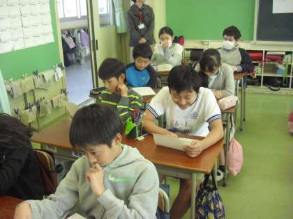 1組は学級活動で、友達のよいところを伝え合う活動をしました。友達に自分のよいところを書いてもらい、それを読んでいる子どもたちの顔には、笑顔があふれていました。