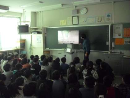 2組、3組は合同で理科の実験の映像を視聴しました。これまで実際に行った実験の方法と結果を映像で確かめながら、学習の理解を深めていました。