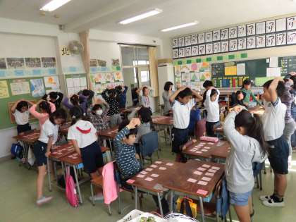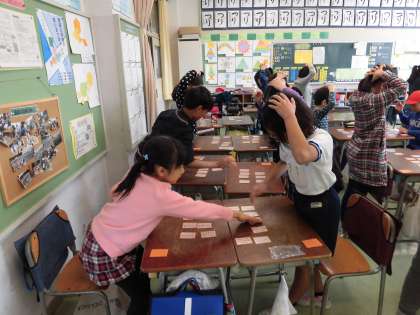 2学期から行っている各学級の順位戦の番付ごとに集まり、1対1の真剣勝負を行いました。それぞれの得意札を絶対に取ってやろうと、集中して札を読み上げる声に耳を澄ませている子どもたちでした。