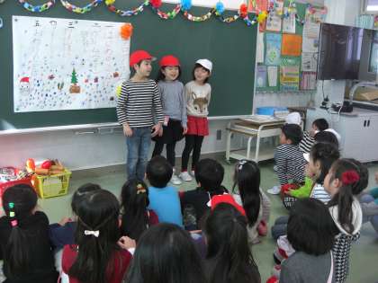 1年生では、それぞれの学級でお楽しみ会を開きました。