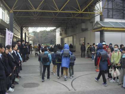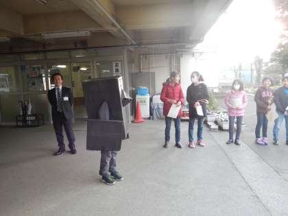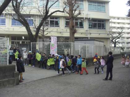 上祖師谷中学校の正門では代表委員会、カラス君、そして校長先生があいさつ運動に取り組みました。小学校では4年生、6年生が取り組みました。上祖師谷中学校の生徒のみなさん、そして保護者の方々にもご協力をいただきました。