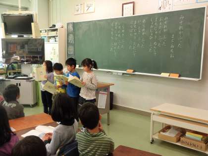 5時間目には、教科「日本語」の学習を行いました。冬の詩を読んだり、なぞなぞを楽しんだりしました。3学期も詩や短歌に触れたり、なぞなぞを作ったりして学習を進めていきます。