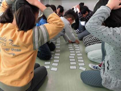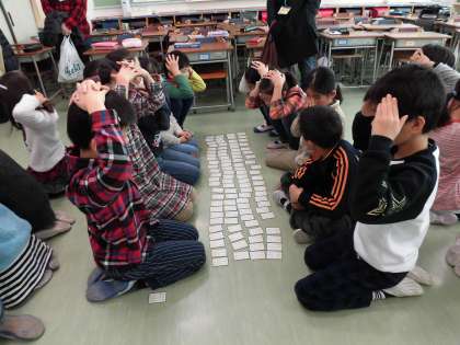1組と2組で百人一首の対抗戦を行いました。