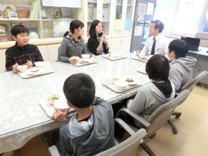 今日は3組の6名が校長室に招待されて会食をしました。