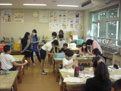 2組では図画工作科の学習をしました。動きのある人間の様子を表現するため、針金で作った骨組みに粘土をかぶせ、絵の具で色を付ける作業をしていました。