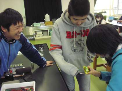 3組では理科の実験をしました。ニクロム線に電気を通し、電気エネルギーが熱エネルギーに変わることを、興味深そうに確かめていました。
