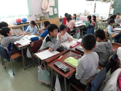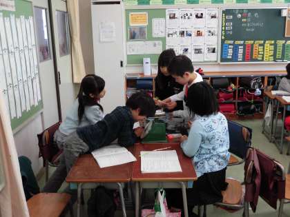 はかりの使い方を学習し、教室にあるいろいろなものの重さをグループで楽しく量って調べることができました。