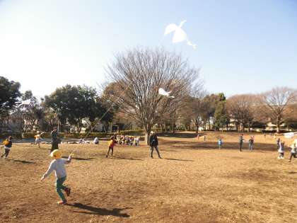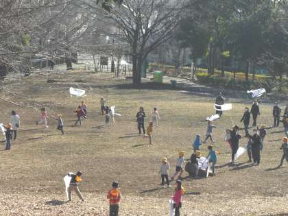 祖師谷公園では学級ごとにたこあげをしたり、公園の中を散策して冬を見つけたりしました。