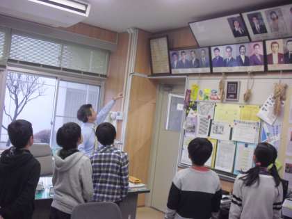 給食の時間には校長室会食会でした。1組の6名の子どもたちが招待され、校長室内の歴代校長、PTA会長の肖像などのお話をしていただきました。その後は和やかな雰囲気で給食と会話を楽しんでいました。