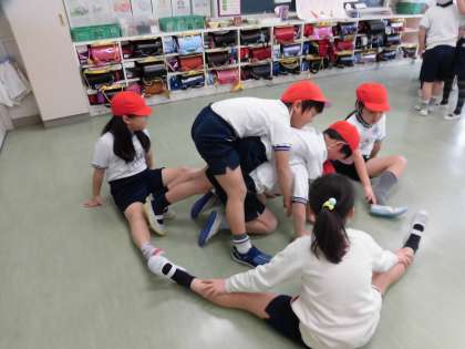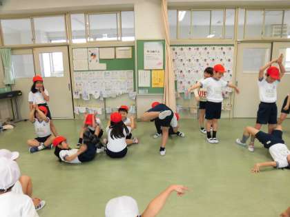 体の姿勢や動きを工夫して、いろいろなものになりきったり、友達と考えたことを一緒に表現したりして、表現することを楽しむことができました。