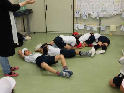 本日は、世田谷パブリックシアターの方々にお越しいただき、表現の学習をしました。