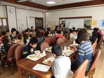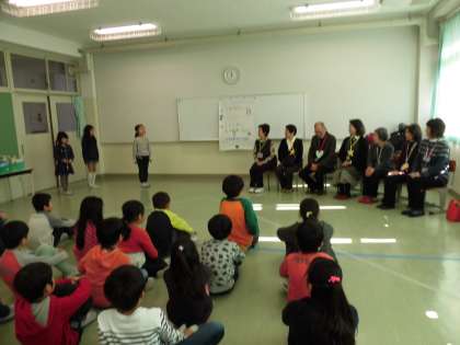 子ども達のお祖父様お祖母様にお越しいただき、昔遊びを教えていただいたり、一緒に給食を食べたりして、楽しい時間を過ごすことができました。