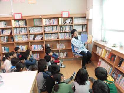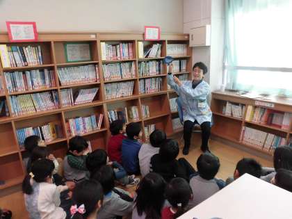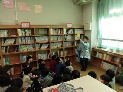図書の時間には、司書さんが読み聞かせを行ってくれます。