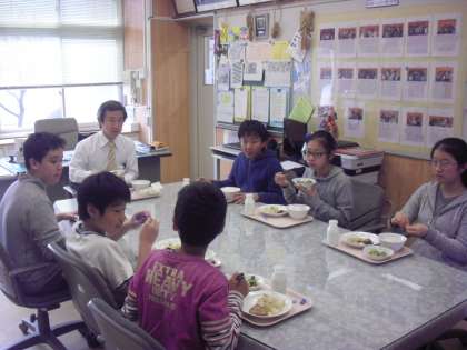 1月から行っている校長室会食会もいよいよ終盤です。今日は1組の最終組が招待され、校長先生と楽しく給食を食べました。