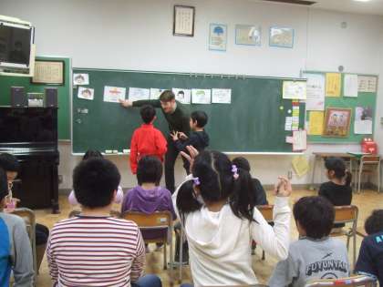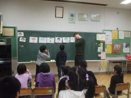 今日は、英語で「感情」を表す言葉について学習をしました。まず、一人ずつ自己紹介をしました。その後、友達と英語のあいさつでコミュニケーションを取りながら様々な感情を英語で言いました。子どもたちは表情や身ぶり手ぶり等も交えて、感情を英語で楽しく表現することができました。
