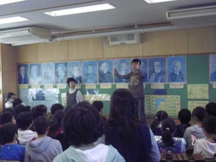 今日は学年合同で音楽の学習をしました。6年生を送る会で演奏する曲の練習です。